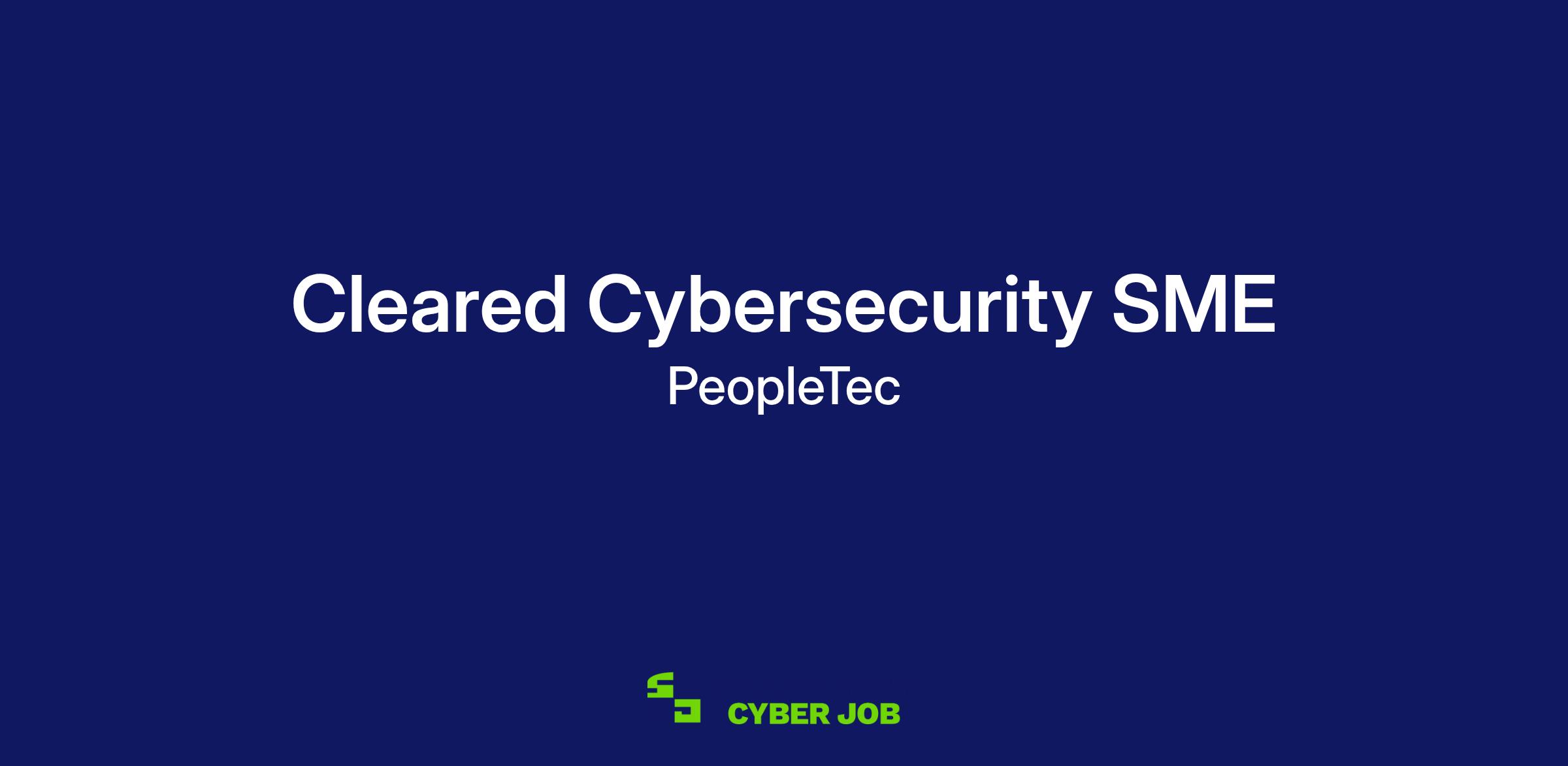 PeopleTec is currently seeking a Cleared Cybersecurity SME to support our Huntsville, AL location.