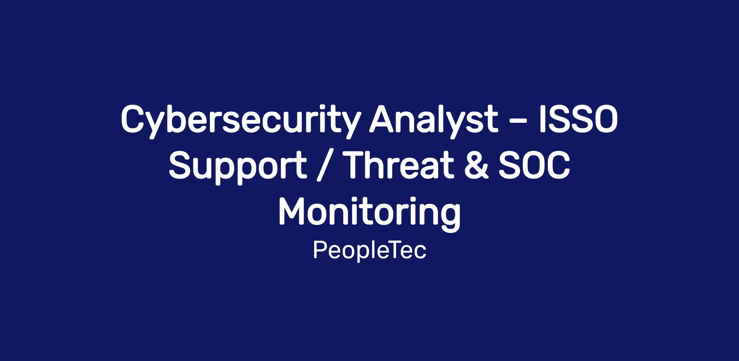 PeopleTec is currently seeking a Cybersecurity Analyst – ISSO Support / Threat & SOC Monitoring to support our Camp Roberts (San Miguel, California) location.