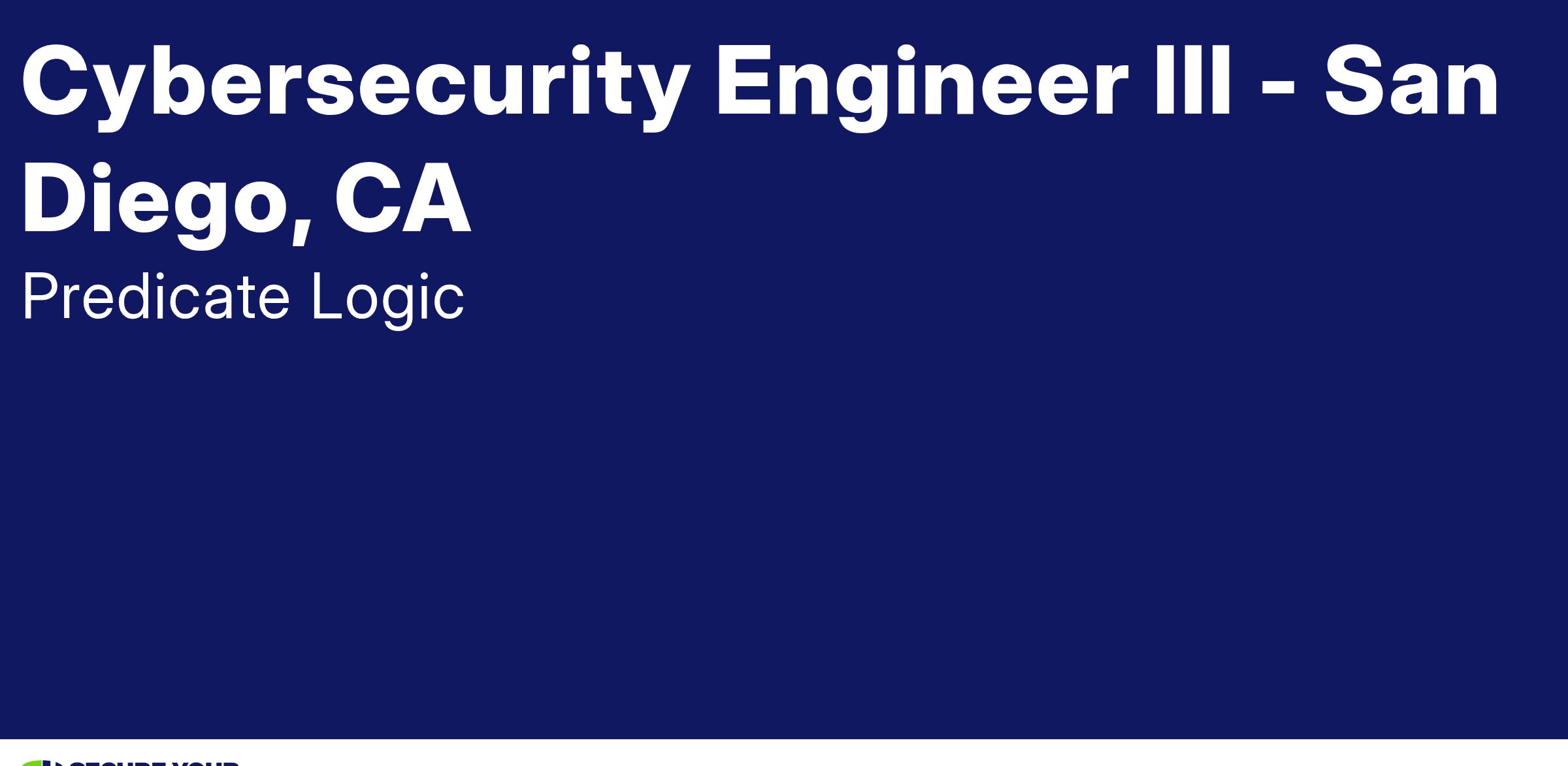 Predicate Logic is looking for a motivated Cybersecurity Engineer III to join our team in San Diego, CA.