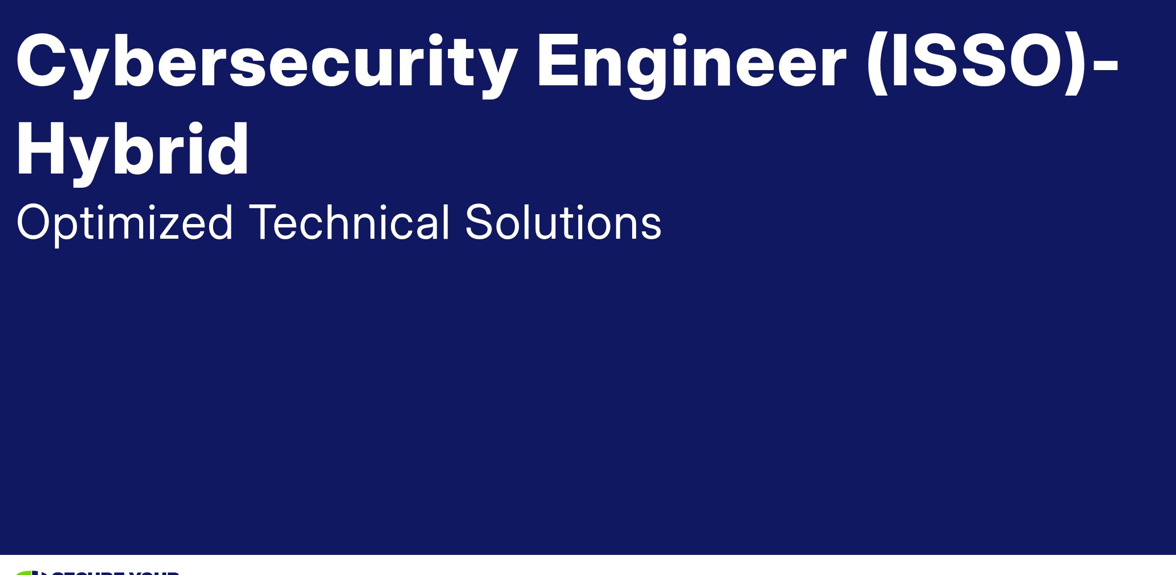 OTS is seeking a Cybersecurity Engineer (ISSO) to assist in security assessments, vulnerability tracking, and compliance enforcement for the system. This role will support the ISSM in managing security controls and DevSecOps security automation. This hybrid role allows flexibility to work remotely but requires on-site presence at an approved SIPR facility.