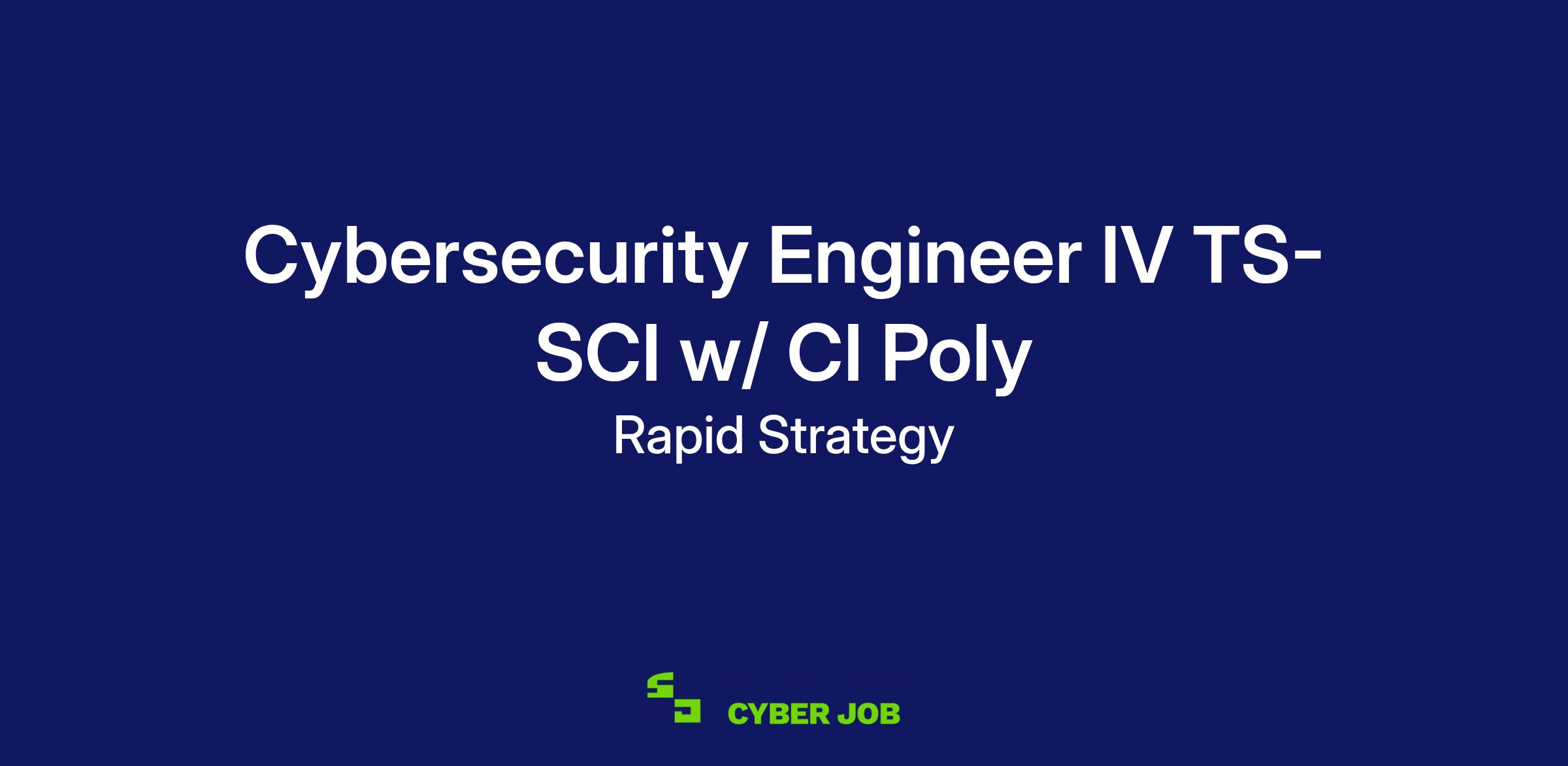 Rapid Strategy is an award-winning, African-American-owned small business providing advanced cybersecurity and IT services to federal and commercial clients. Our mission is to deliver secure, high-impact solutions that protect and enable mission success. We are currently seeking a Cybersecurity Engineer IV to support a federal customer. This role requires a TS-SCI CI Poly and is on-site in Reston, Virginia.