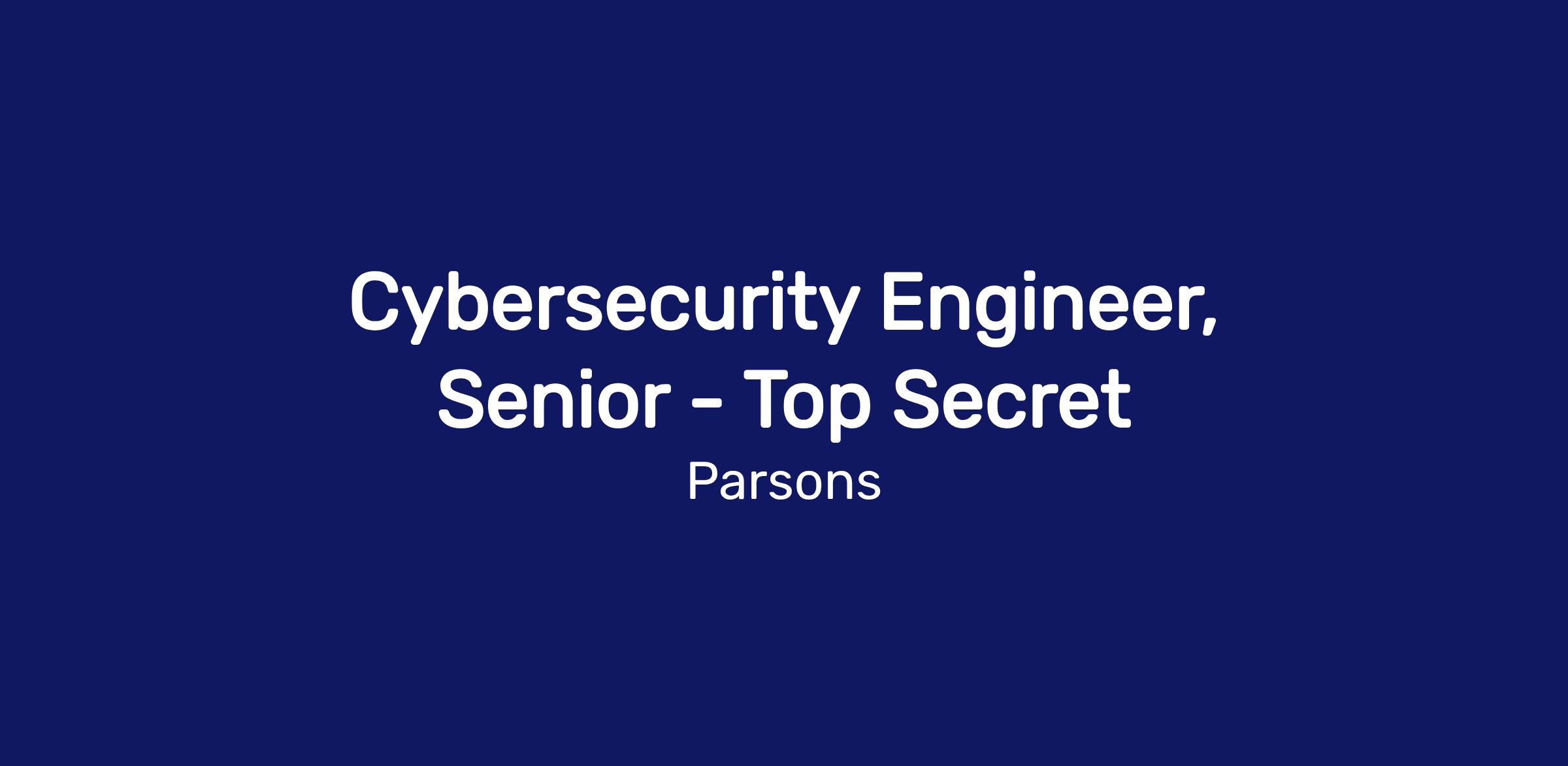 An active Top Secret security clearance is required for this position.This position is part of our Federal Solutions team.The Federal Solutions segment delivers resources to our US government customers that ensure the success of missions around the globe. Our intelligent employees drive the state of the art as they provide services and solutions in the areas of defense, security, intelligence, infrastructure, and environmental. We promote a culture of excellence and close-knit teams that take pride in delivering, protecting, and sustaining our nation's most critical assets, from Earth to cyberspace. Throughout the company, our people are anticipating what’s next to deliver the solutions our customers need now.Salary Range: $125,100.00 - $225,200.00We value our employees and want our employees to take care of their overall wellbeing, which is why we offer best-in-class benefits such as medical, dental, vision, paid time off, 401(k), life insurance, flexible work schedules, and holidays to fit your busy lifestyle!This position will be posted for a minimum of 3 days and will continue to be posted for an average of 30 days until a qualified applicant is selected or the position has been cancelled.Parsons is an equal opportunity employer, and all qualified applicants will receive consideration for employment without regard to race, color, religion, sex, national origin, disability, veteran status or any other protected status.We truly invest and care about our employee’s wellbeing and provide endless growth opportunities as the sky is the limit, so aim for the stars! Imagine next and join the Parsons quest—APPLY TODAY!Parsons is aware of fraudulent recruitment practices. To learn more about recruitment fraud and how to report it, please refer to https://www.parsons.com/fraudulent-recruitment/.