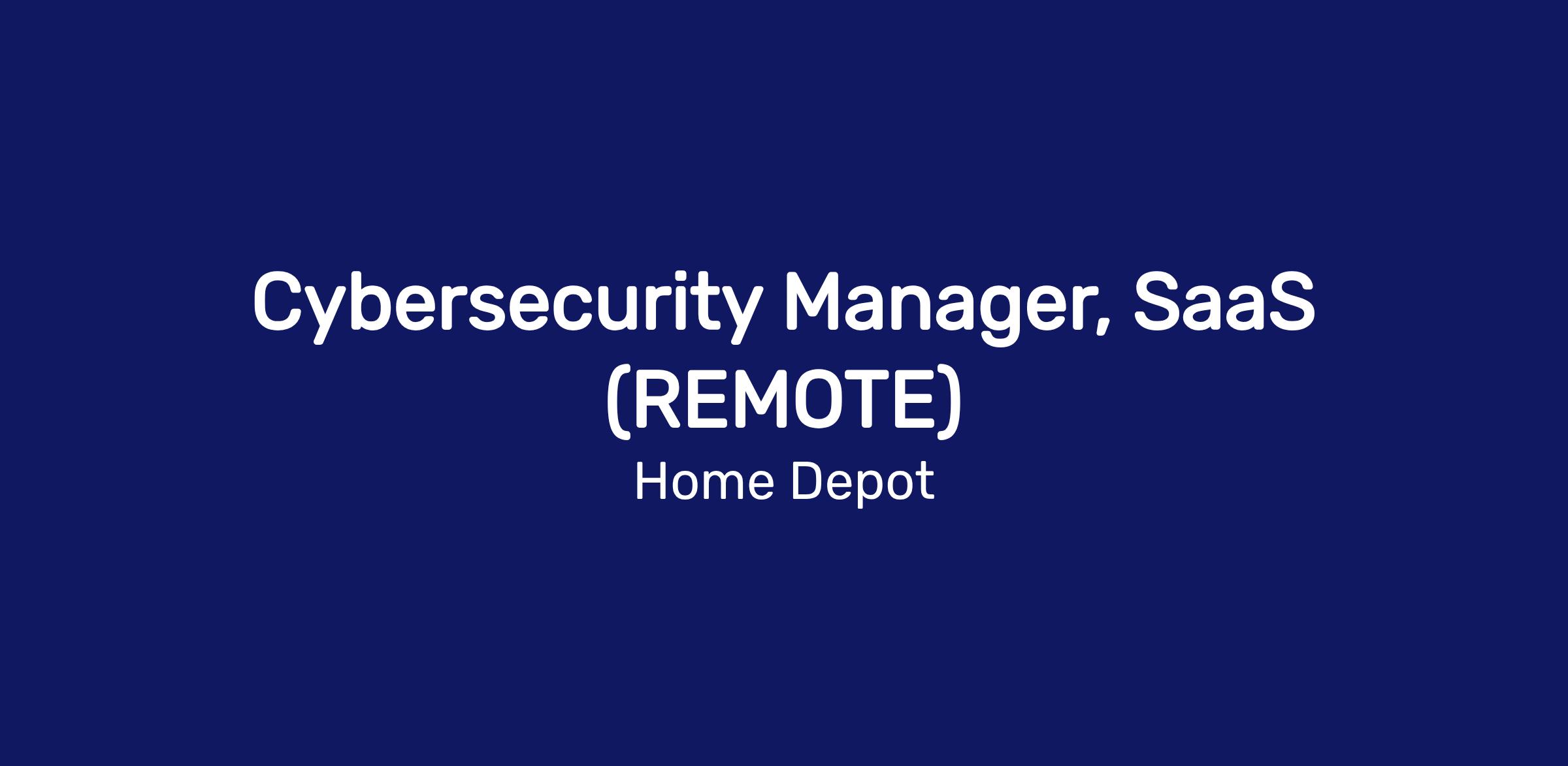 Cybersecurity Manager, SaaS (REMOTE)