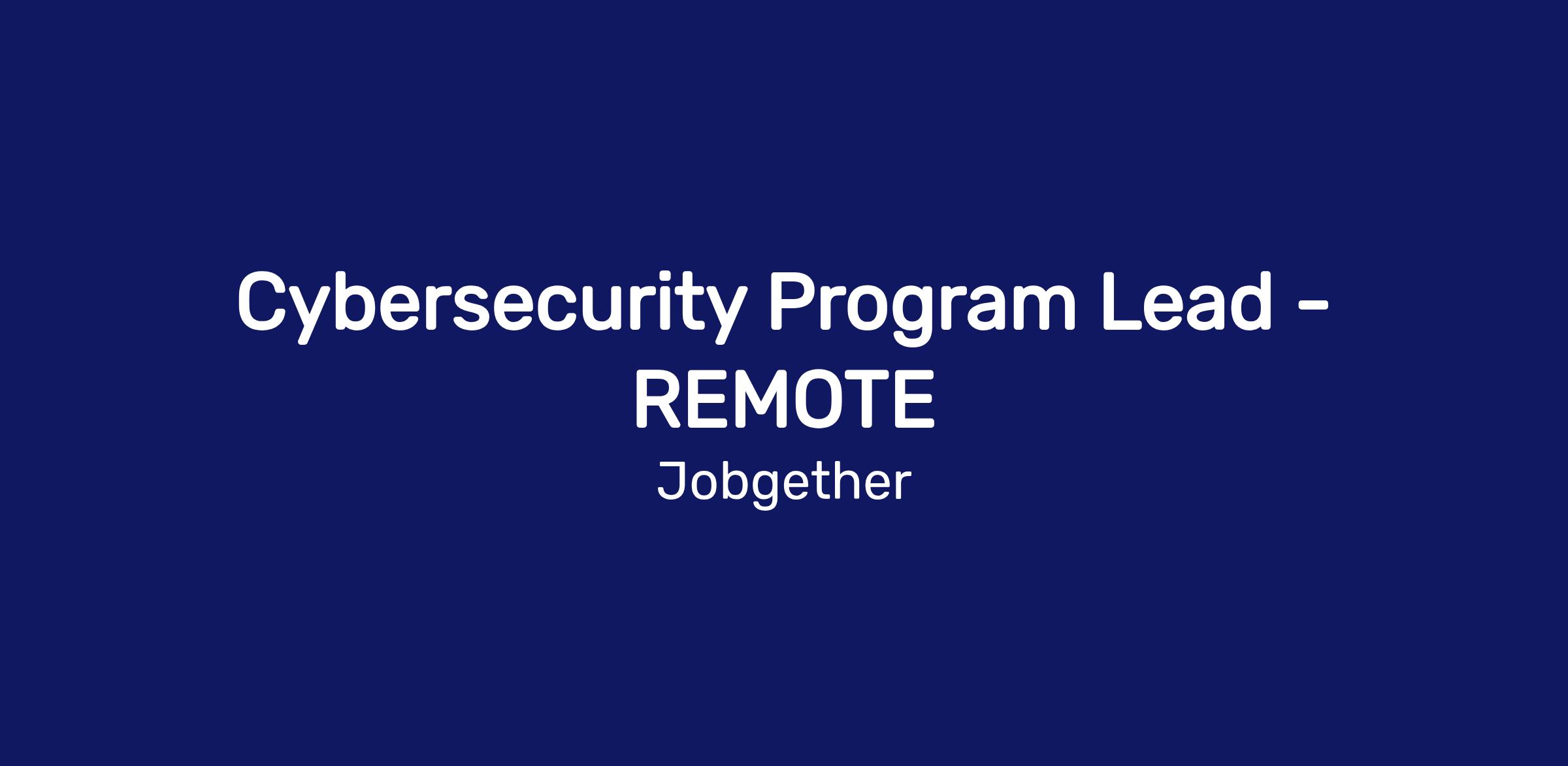 Cybersecurity Program Lead - REMOTE
