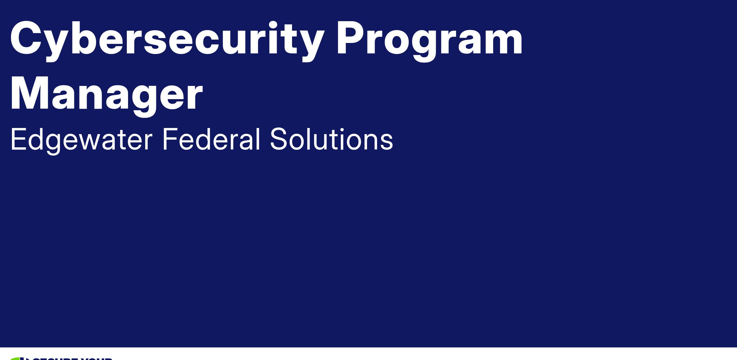 Edgewater Federal Solutions is currently seeking a Cybersecurity Program Manager to provide support to a client in the Maryland/Washington DC Metro area.