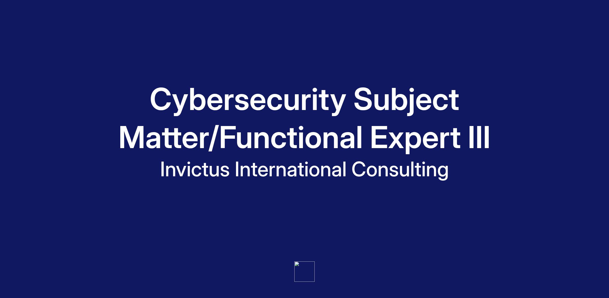 Title: Cybersecurity ~ Subject Matter Functional Expert III