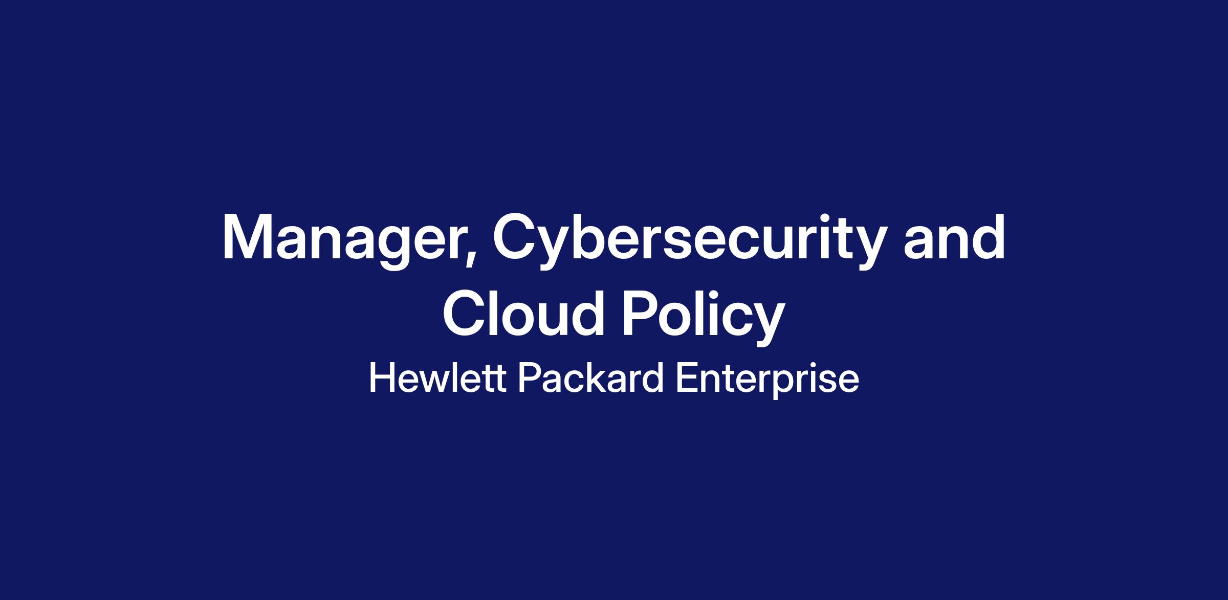 We are seeking a skilled and motivated leader to join HPE’s Global Regulatory Affairs team and serve as Manager, Cybersecurity and Cloud Policy. This role, reporting directly to the Regulatory Policy Director will analyze the complex policy and regulatory landscape and develop strategies that enable HPE to continue providing customers with the most secure products and services possible. This role will work closely with global cross-function and business unit teams to develop pan-HPE approaches to cybersecurity and cloud policy and regulatory proposals.