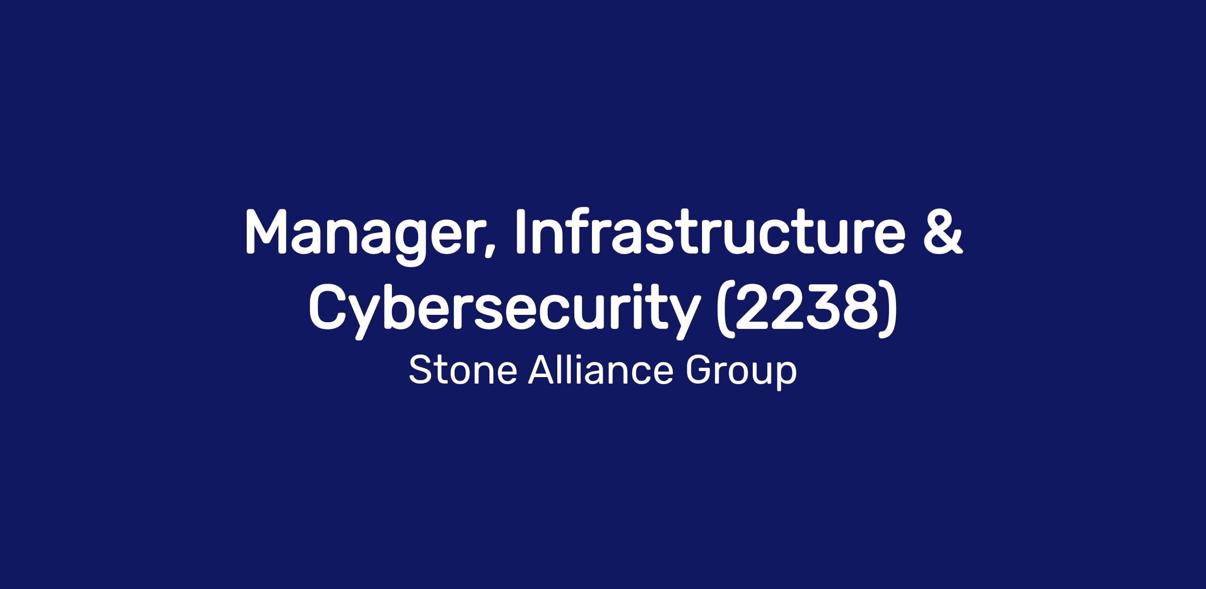 Our client is seeking an experienced Manager, Infrastructure & Security to join their team.