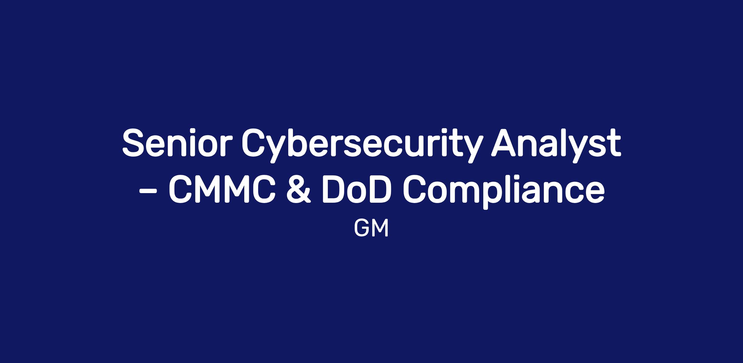 The Cybersecurity Analyst will help lead the CMMC compliance efforts to enable pursuit of new GM Defense and other U.S. Government–regulated programs. This role works with cross‑functional teams to execute and assess control implementation, collect and validate audit‑ready evidence, and prepare artifacts for external assessments. The analyst works with the GMD GRC team and leads IT, program management, cloud, and engineering teams to ensure compliance with CMMC, NIST SP 800‑171, DFARS, FAR, and DoD cybersecurity requirements supporting government contracts.