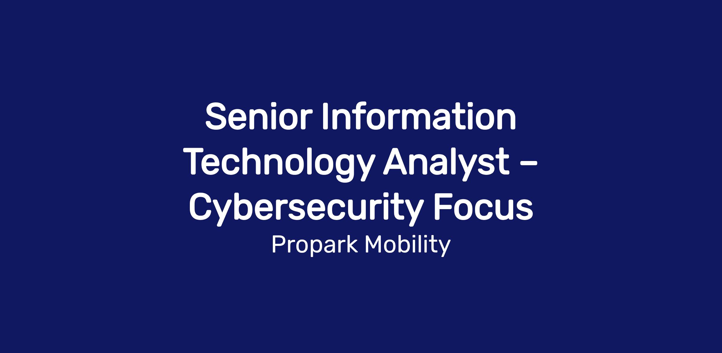Senior Information Technology Analyst – Cybersecurity Focus