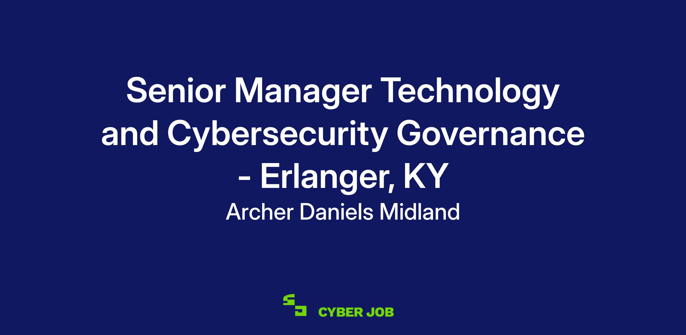 Senior Manager Technology and Cybersecurity Governance - Erlanger, KY (Cincinnati Metro)Job Summary