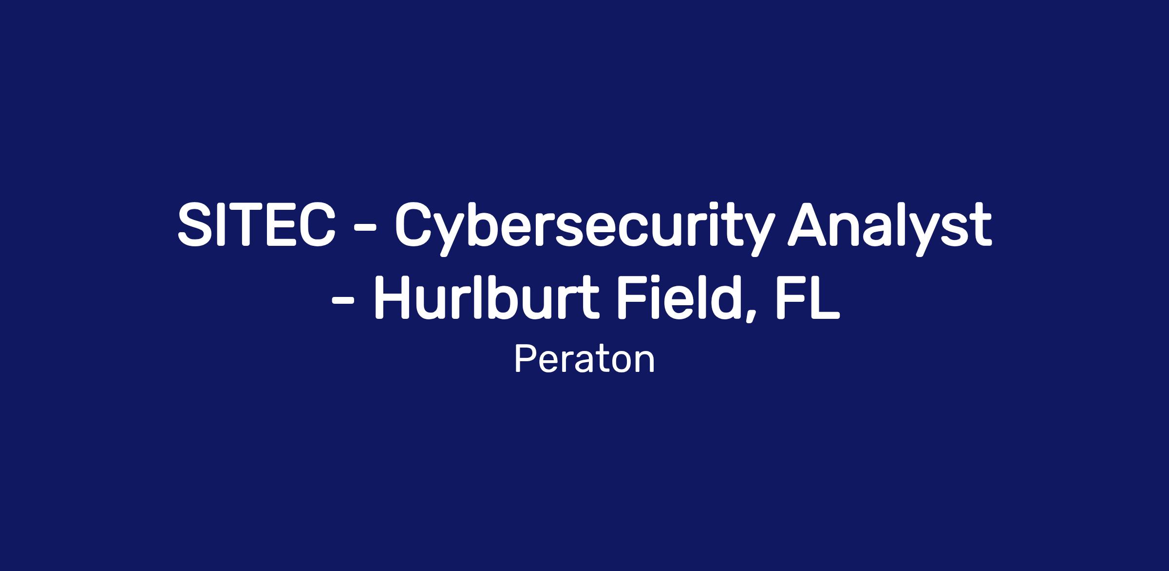 Peraton requires a Cybersecurity Analyst to support the Special Operation Command Information Technology Enterprise Contract (SITEC) – 3 EOM. This position is located at Hurlburt Field, FL.