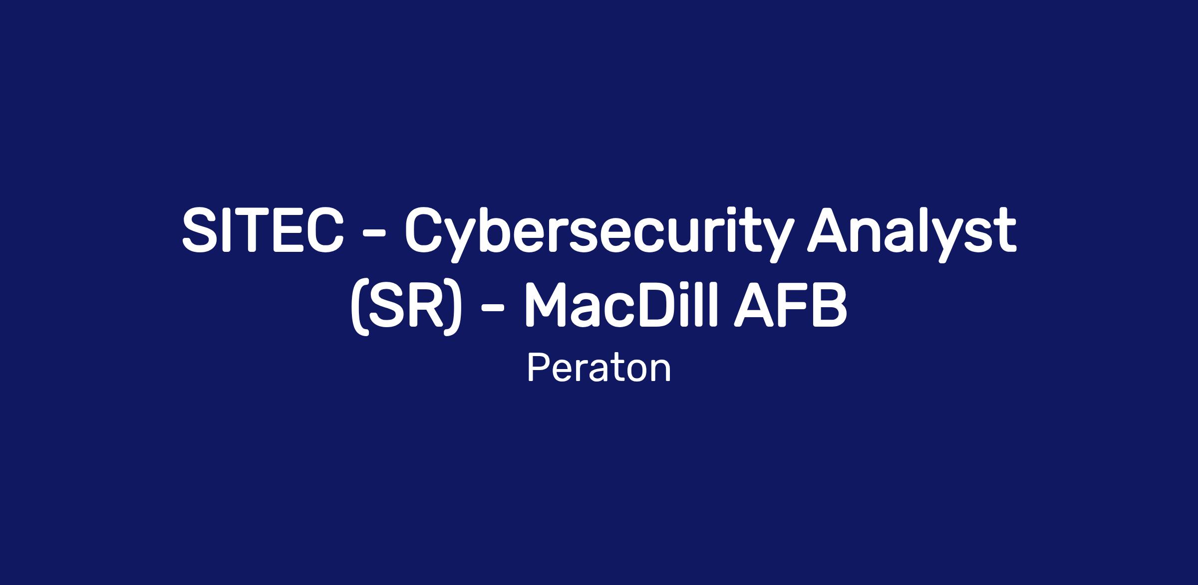 SITEC - Cybersecurity Analyst (SR) - MacDill AFB